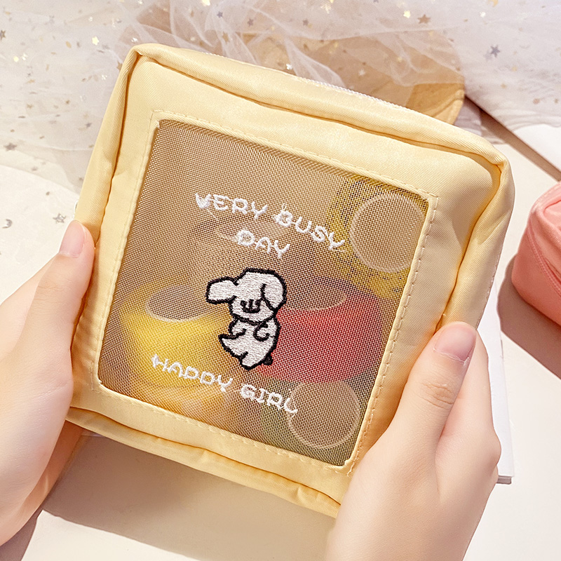 Makeup Bag Mesh Red Ins Wind Day Department Cute Cartoon Teenage Girl Hearts Transparent Large Capacity Portable Cosmetic Containing Bag