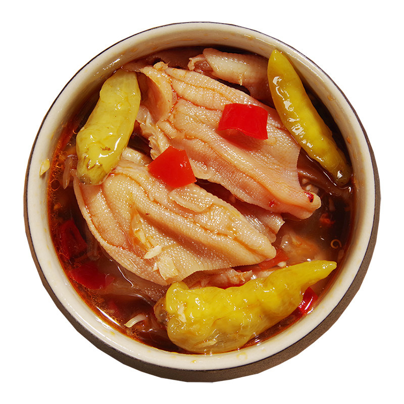 Boneless duck feet (solids ≥ 60%) vinegar, chili, red oil, sesame oil, white sugar, salt, MSG, spices, garlic