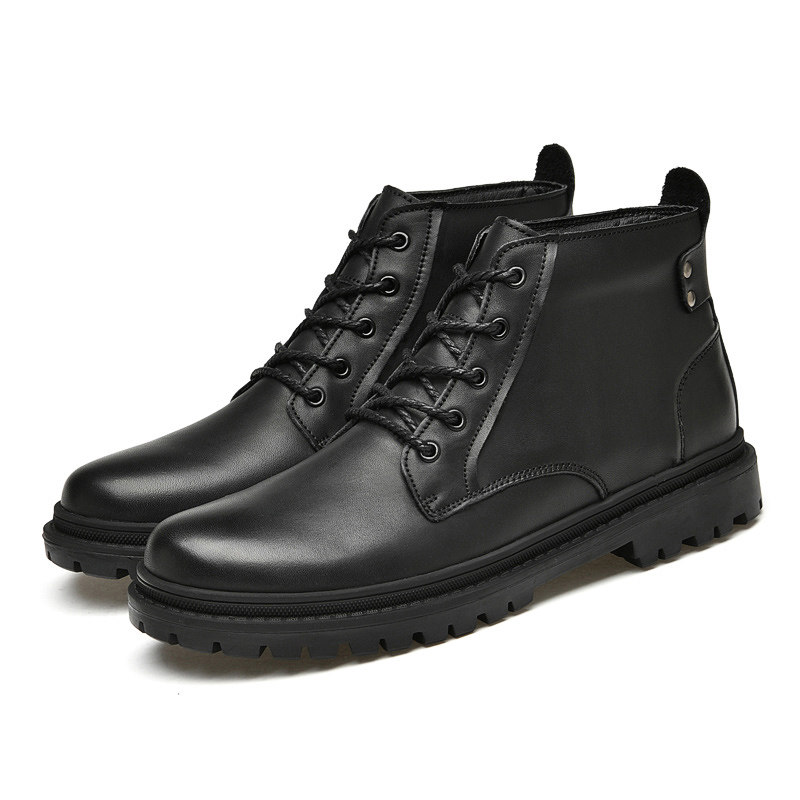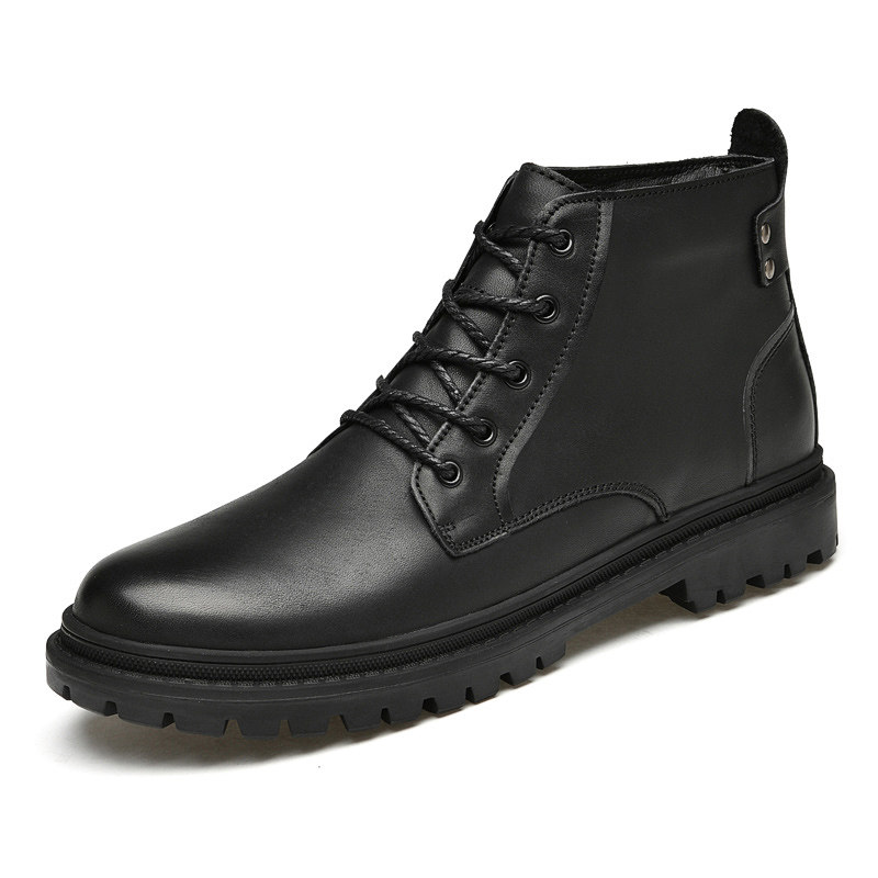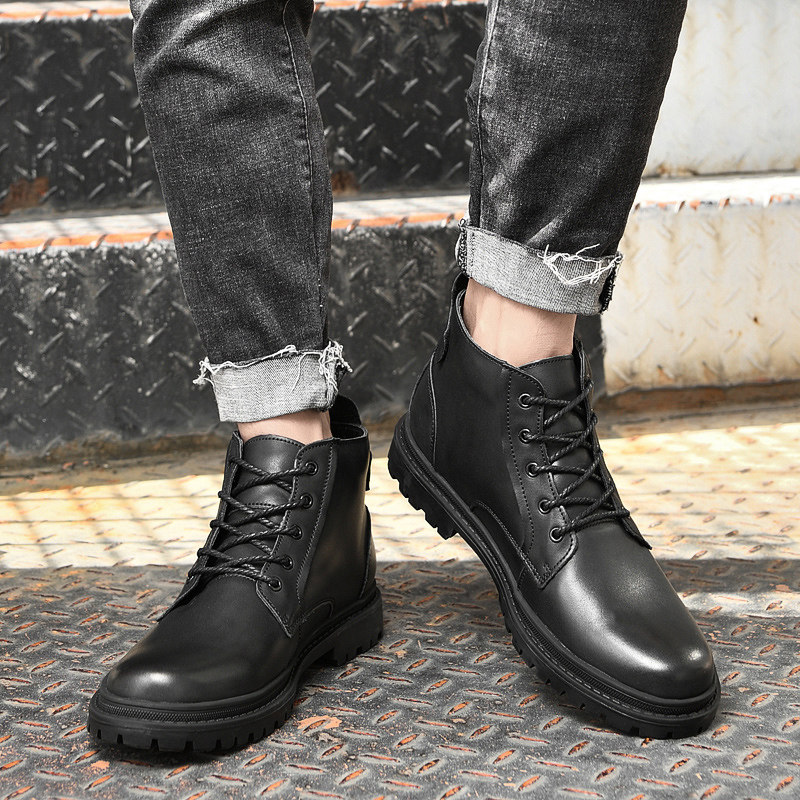 Tide brand Martin boots men's leather versatile warm England plus velvet non-slip boots high barrel men's fall/winter leather boots 2021