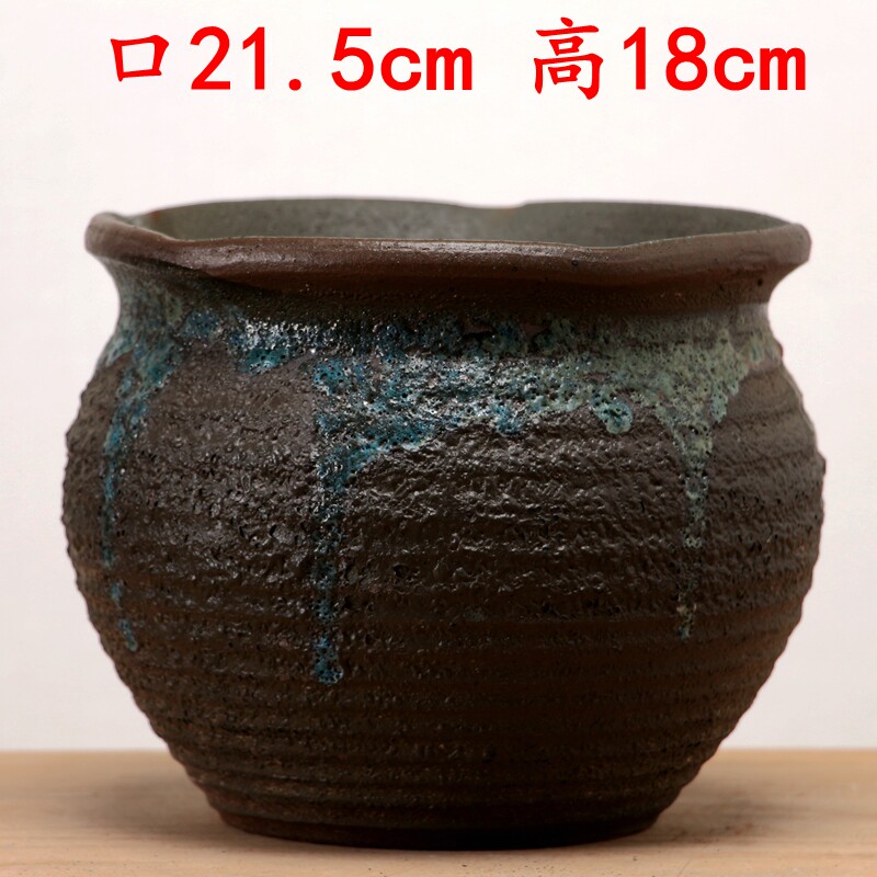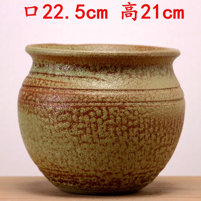 Large number of meat old pile flower pots coarse pottery hand-pulled landscape ceramic high master green planting pottery jar simple and breathable blue flower pot