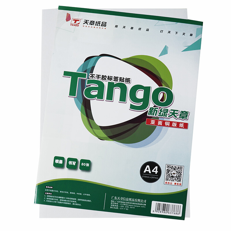 TIANZHANG (TANGO) A4 80 sheets of self-adhesive printing paper Matte coated paper Self-adhesive stickers Sub-surface adhesive label stickers Printing label paper 210*297mm 80 sheets Pack