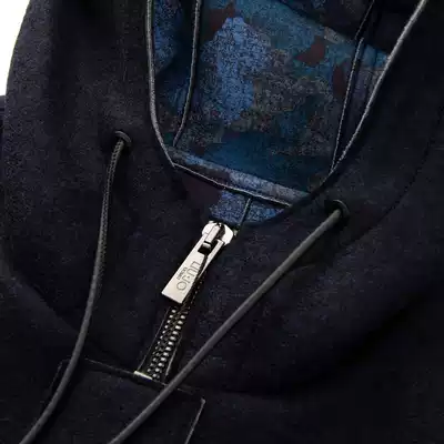 LIUmiddot JOUOMO blue black hooded woolen warm coat men's coat