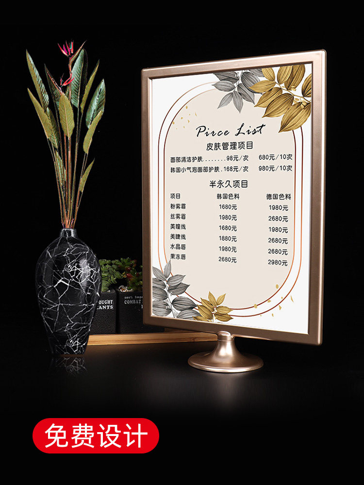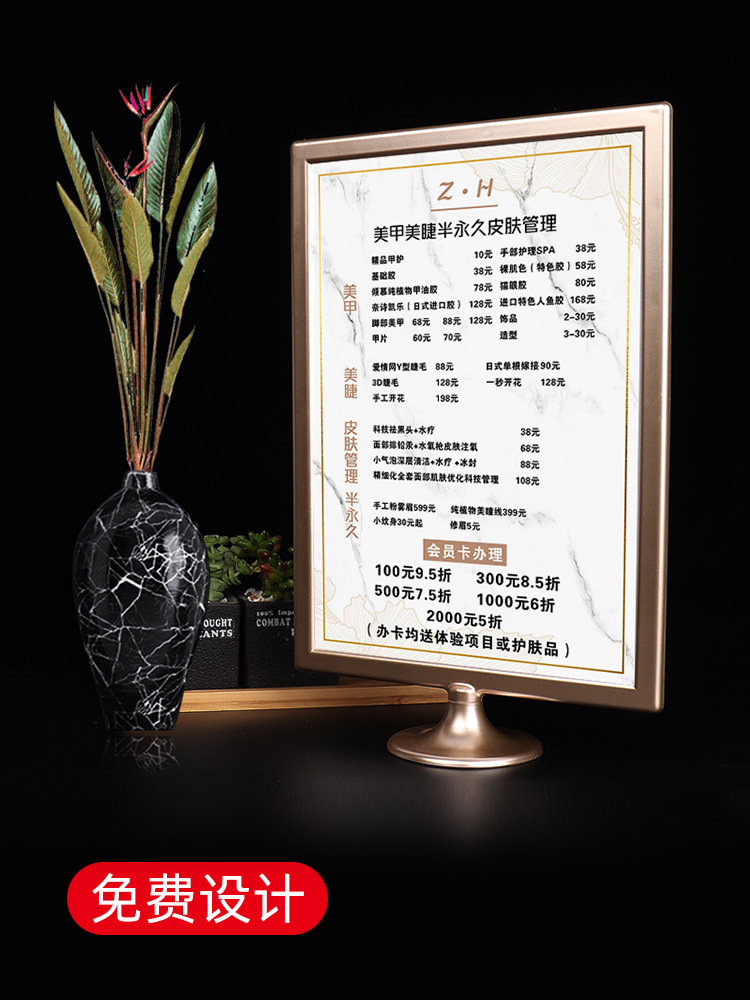 Skin management price list design and production of nail art price list price display card eyelash tattoo embroidery semi-permanent beauty table card table display price card A4 display card magnetic project opening recharge card