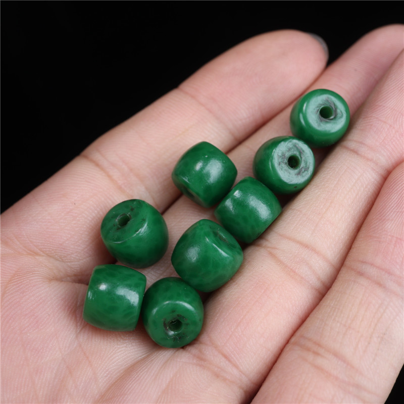 Tibetan handmade vintage imitation old frog skin glass barrel beads Buddha beads hand string DIY handmade emerald glass with beads