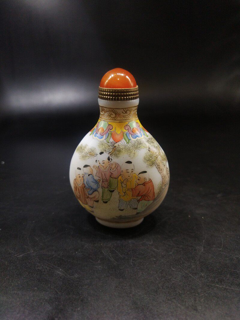 Hand-painted pastel boy play figure glass practical snuff bottle antique play old folk gift ornament