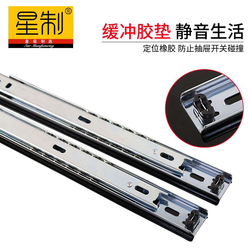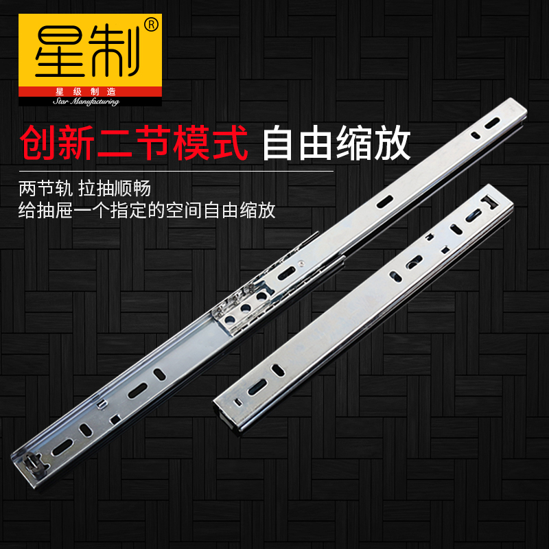 Mute drawer wardrobe two-section rail damping buffer rail slide computer desk keyboard bracket cabinet thickened slide rail