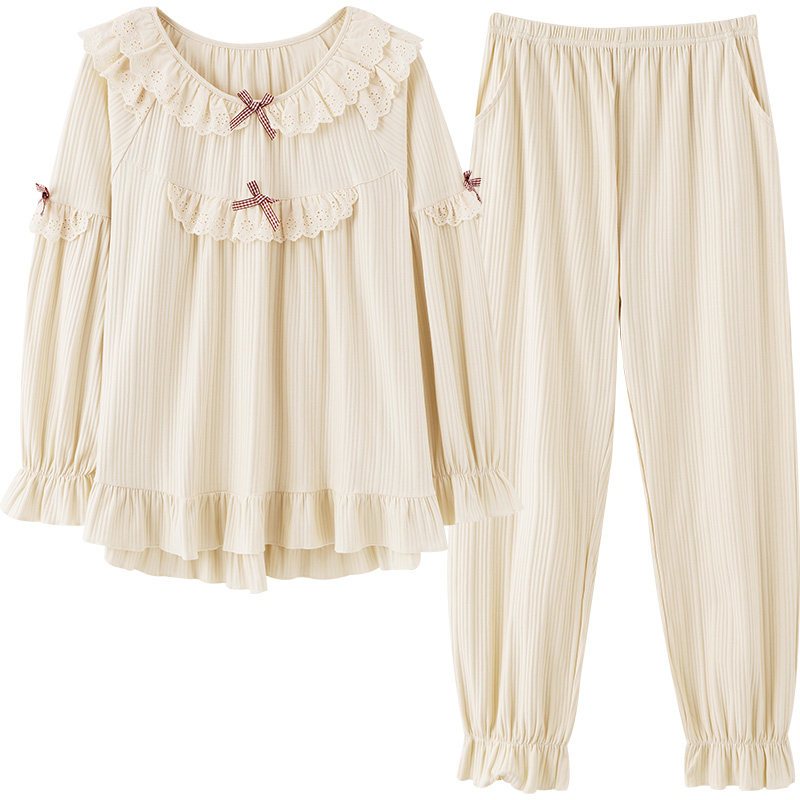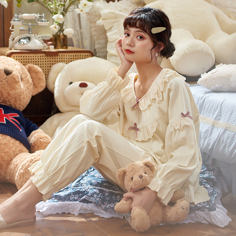Princess Mark Sleepwear Woman Spring Autumn Pure Cotton Long Sleeve Long Pants Cute Princess Wind Home Suit Suit 2022 New