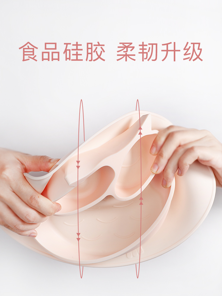 ikv love click Verbatim treasure yellow dinner plate baby suction cup deputy food tray bowl newborn child pink silicone fork spoon