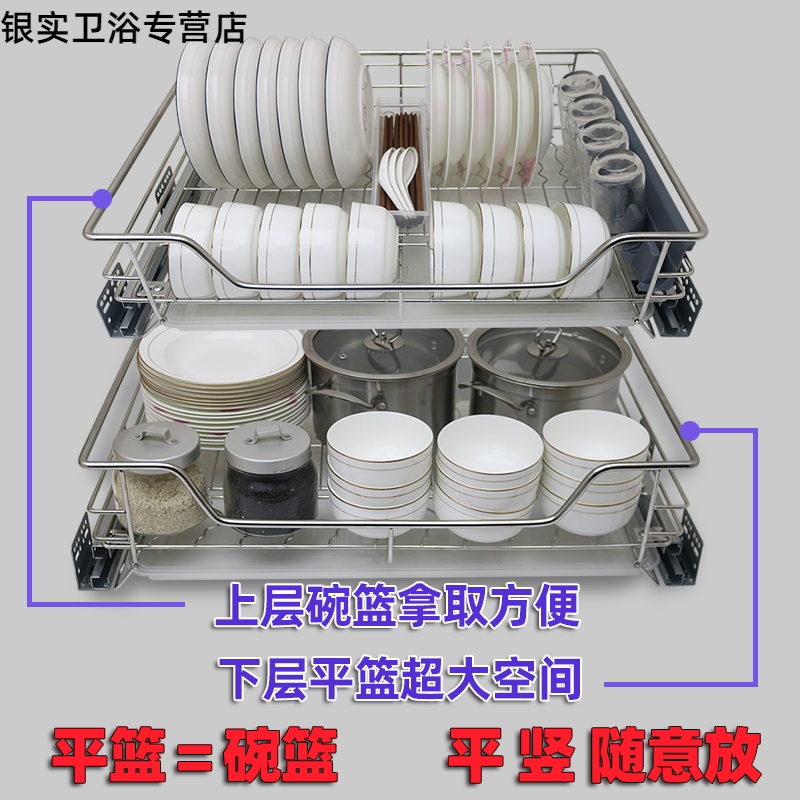 4-400 cabinet inner width 365 flat bottom bowl basket double layer 201 with damping track size 4-500 cabinet inner width 465 flat bottom bowl basket double layer 201 with damping track size 4-