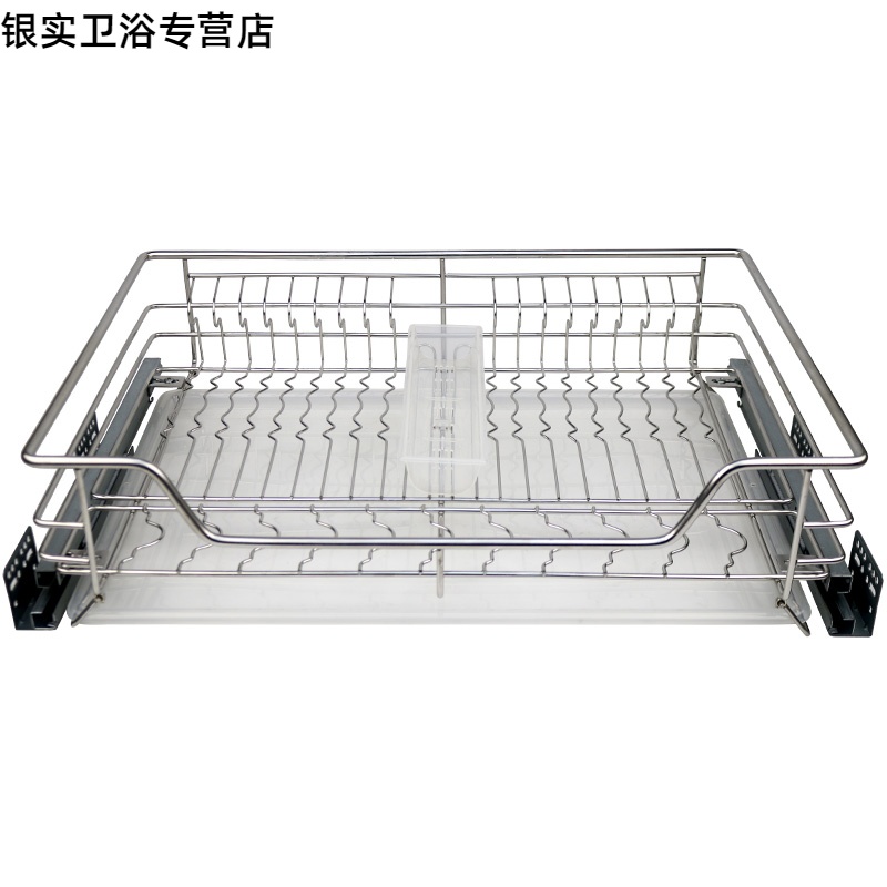 Kitchen overall cabinet built-in 304 stainless steel single-layer flat-bottomed chopsticks box dish basket damping slide rail drawer pull basket