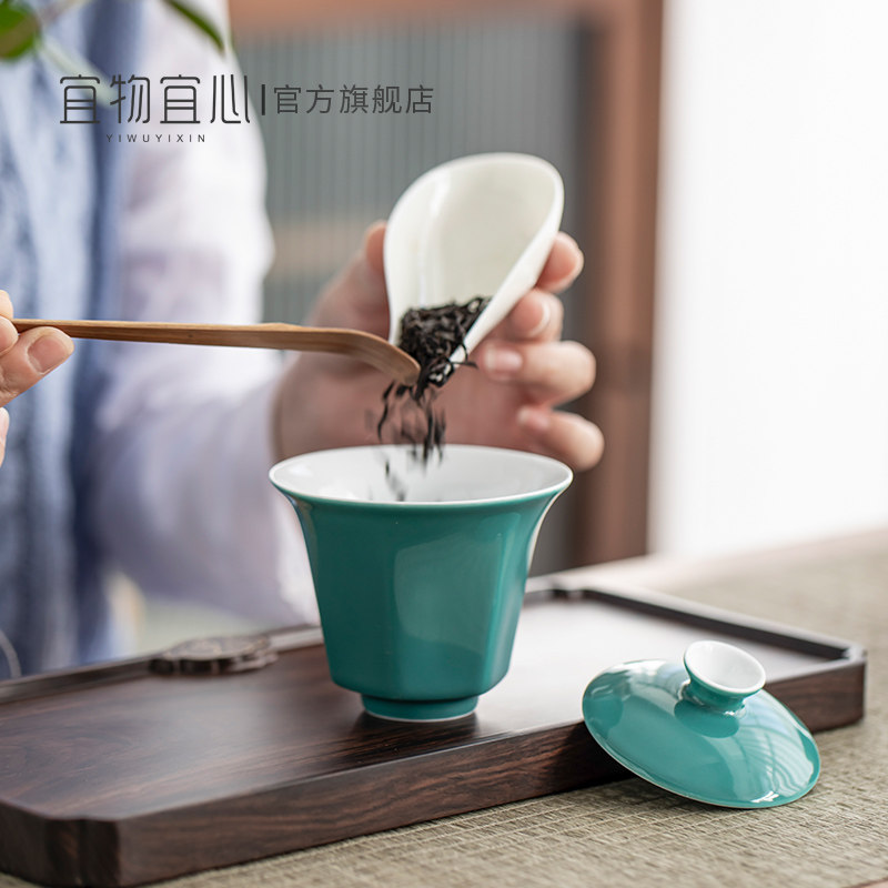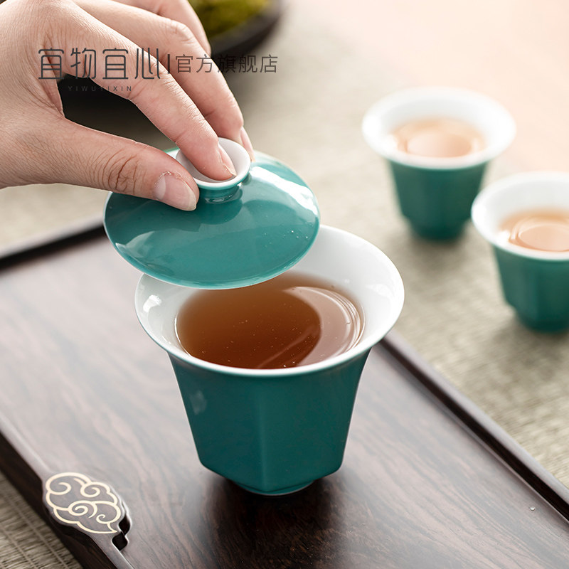 Dehua white porcelain bowl single household thin fetal teacup three with cover cup cup ceramic kung fu tea set