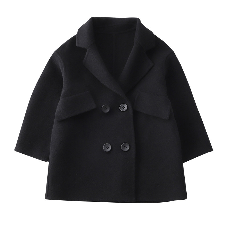 Boy girl's double face cashmere big coat 2021 autumn winter new children's clothes The long version of the children's coat boom
