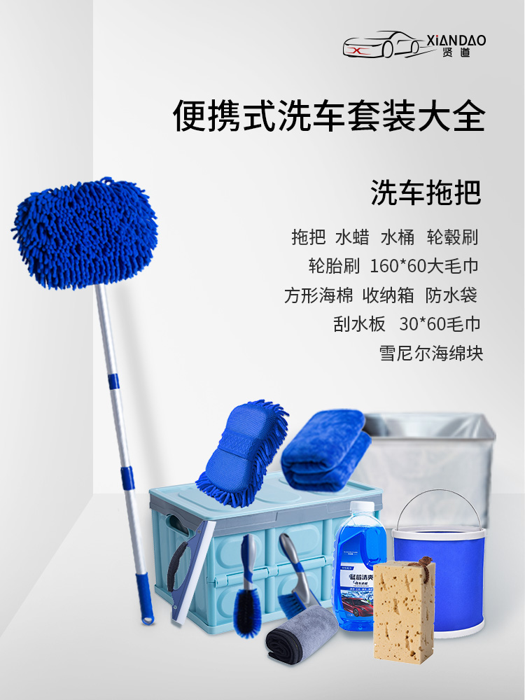 (G) Mop + water wax + bucket + Chenier wipe block + tire brush + hub brush + large towel