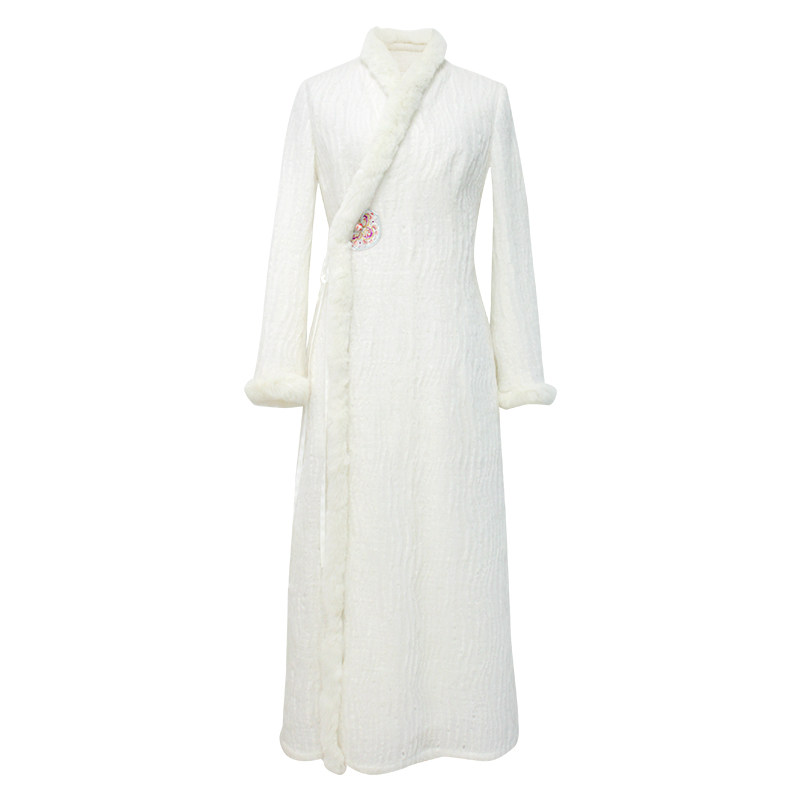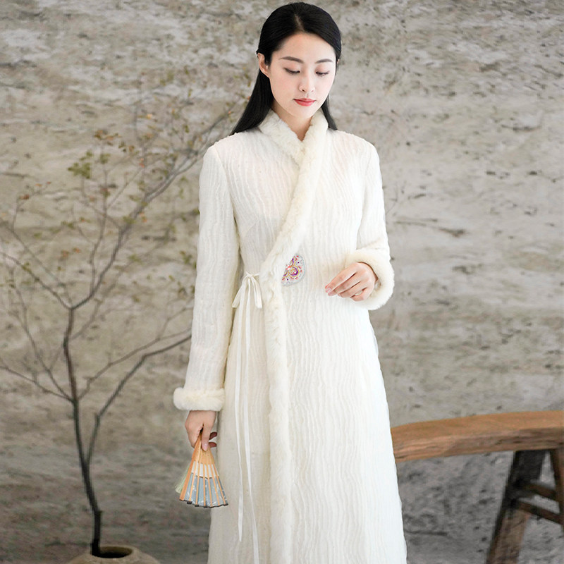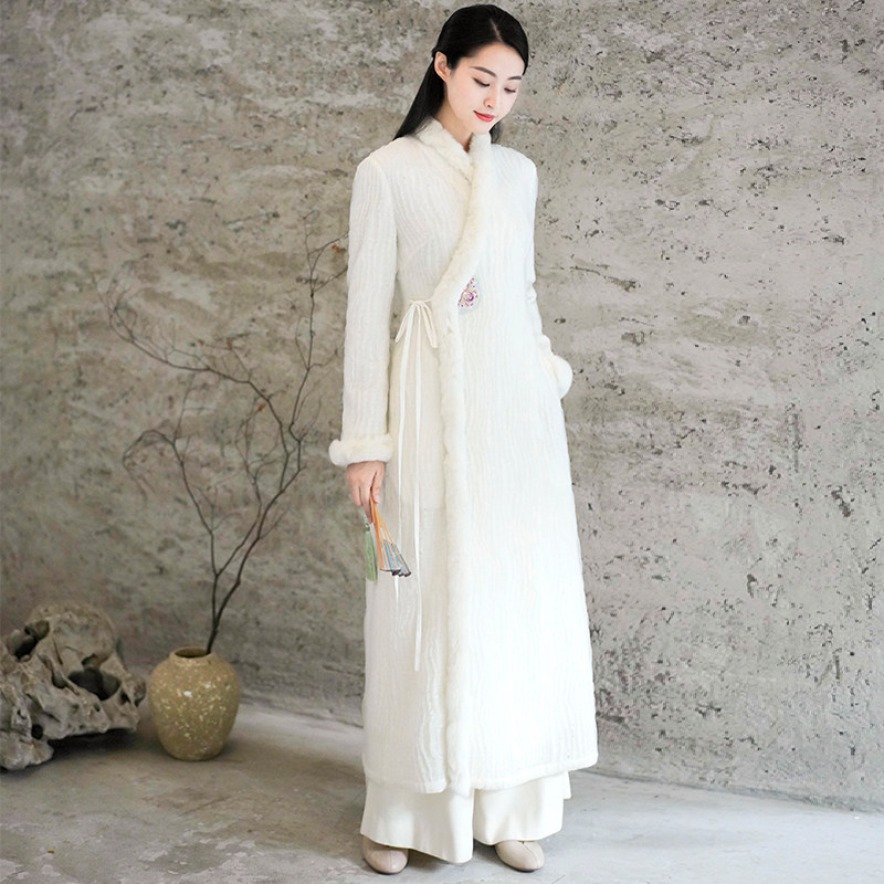 First cicadas original Chinese wind autumn and winter female Han clothes improvement qipao Chinese style ancient wind meditation thickened white coat jacket