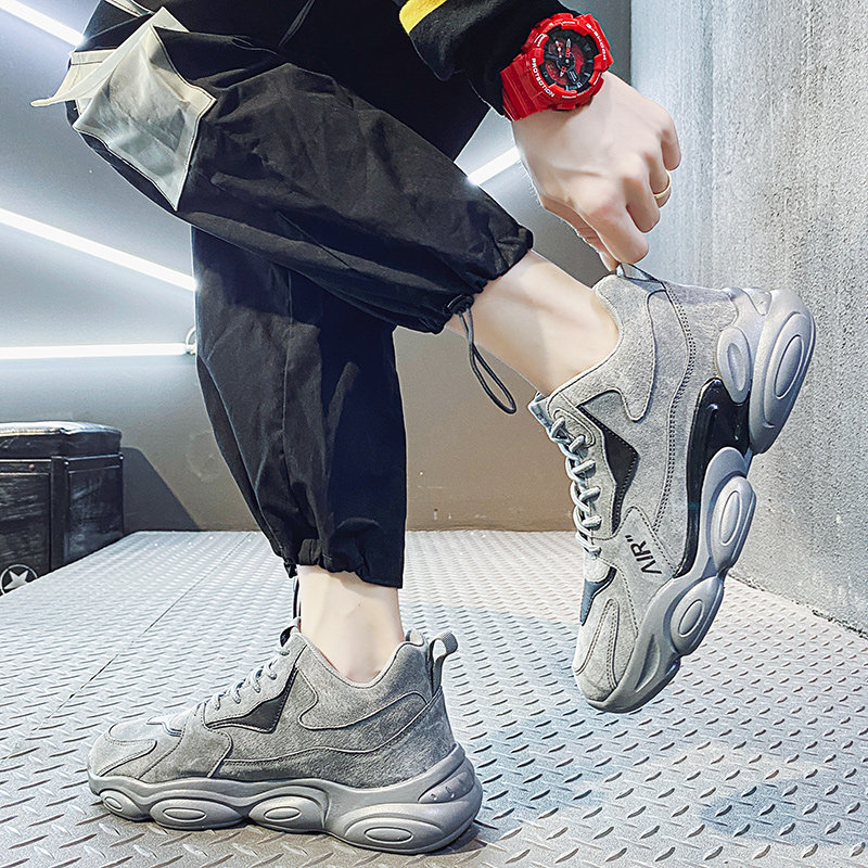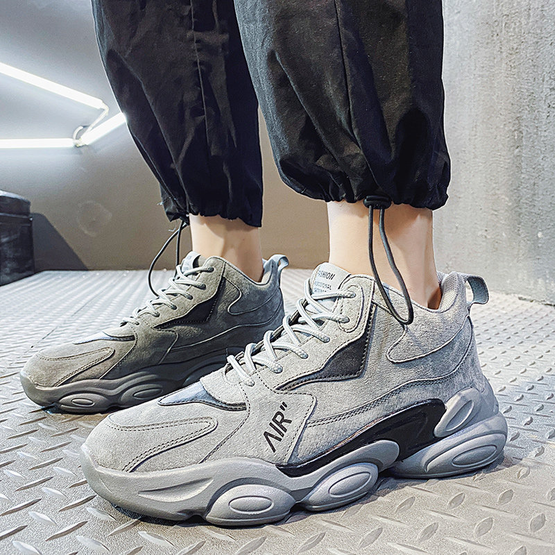 Men's shoes autumn and winter trend 2020 new sports and leisure increase dad student high-top shoes plus velvet warm cotton shoes