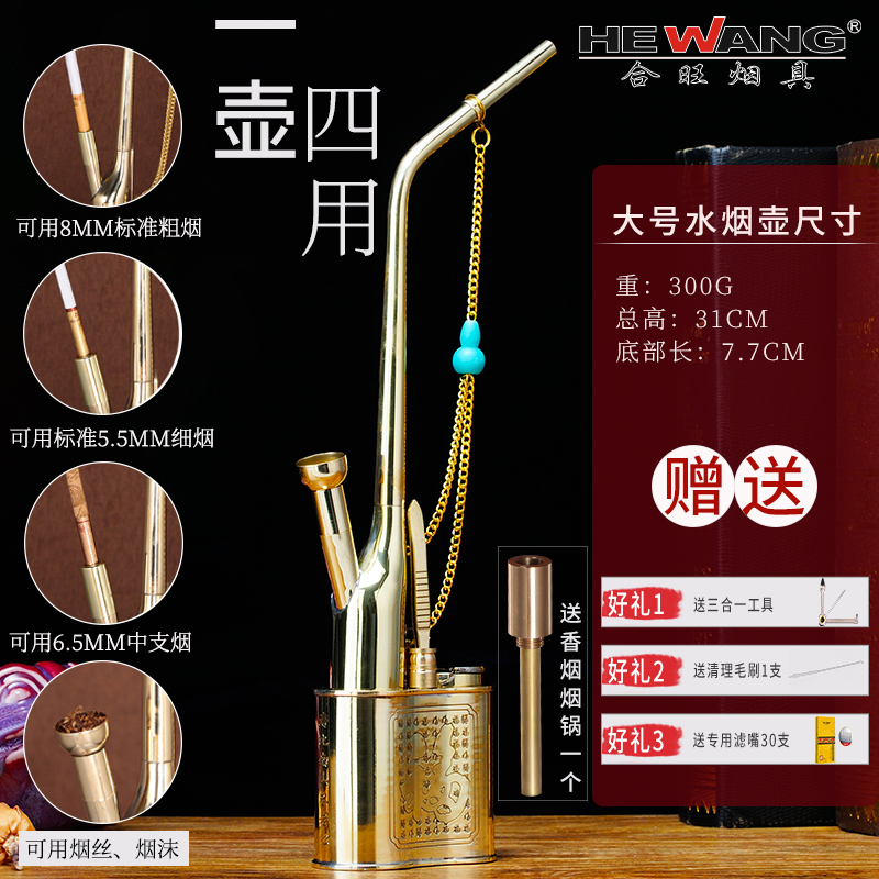 Convent old-fashioned filter water smoke infighting retro thickened dual-use large water smoke pipe water smoke bag brass white copper water smoke pot-Taobao