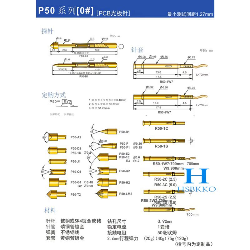 ort probe Model: PA50-B Gold-plated pointed straight tip PCB test needle Spring thimble
