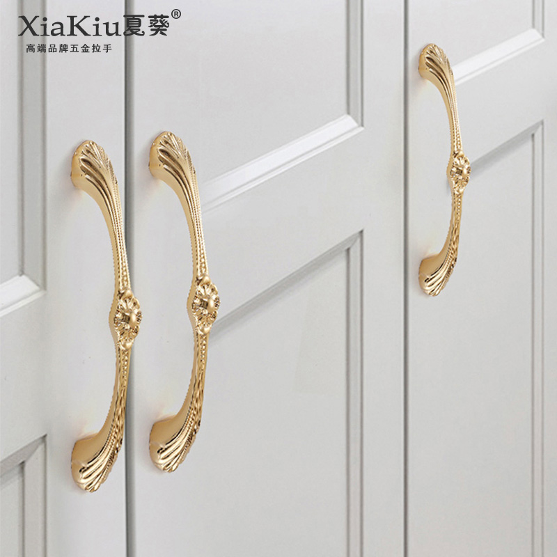 Summer Sunflower Pure Copper Light Lavish Style Italian Style Light Golden Wardrobe Whole Cupboard Door Handle Drawer Copper Handle