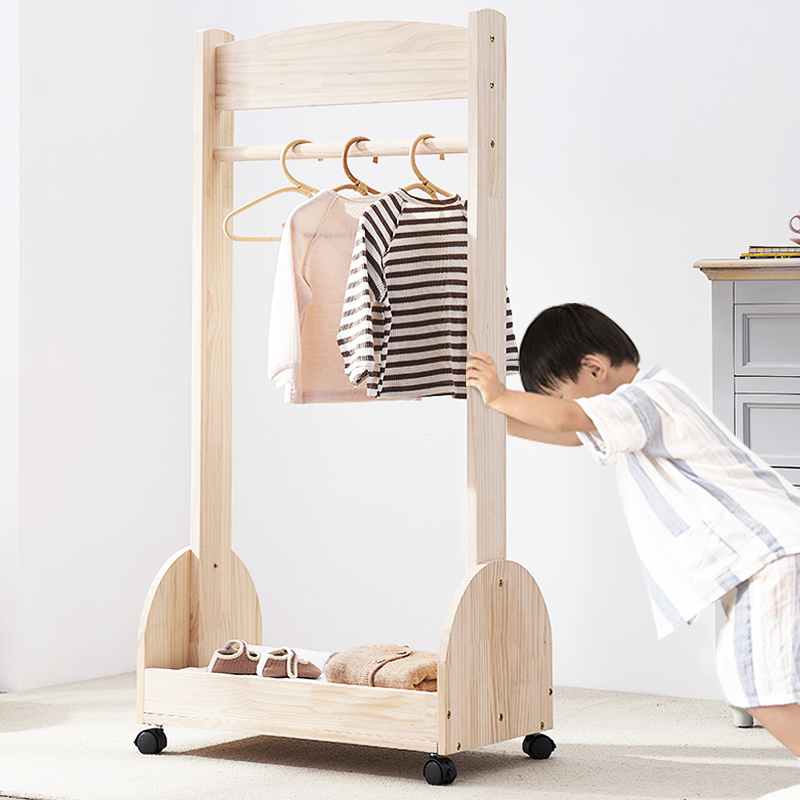 Indoor hanger floor multi-functional solid wood bedroom coat rack children's mobile hanger shopping cart clothes rack
