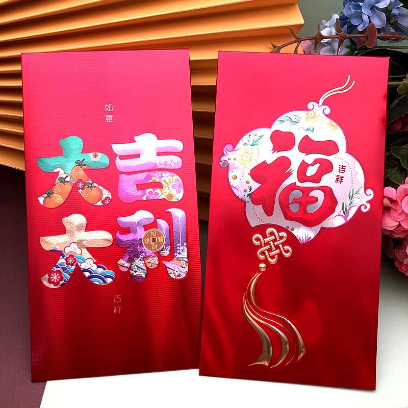 New Chinese New Year Red Pack upscale Chinese Wind Fufu Character Red Package Brief Creative General Versatile Long Version Retro pressed year old Qian Lie is the seal