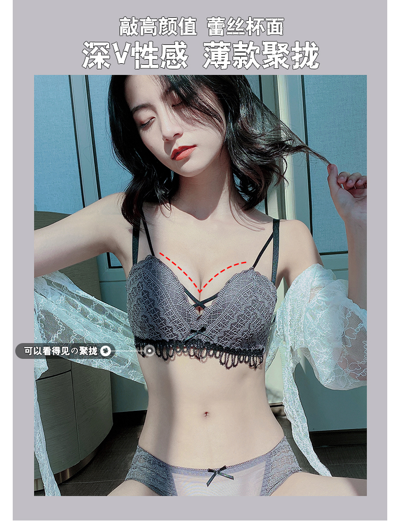 Japanese women's lingerie coalestation collection of auxiliary milk anti-sagging without steel ring adjusting type lingerie sexy lace suit