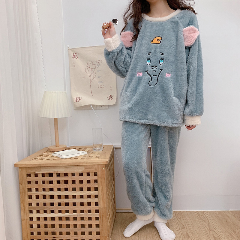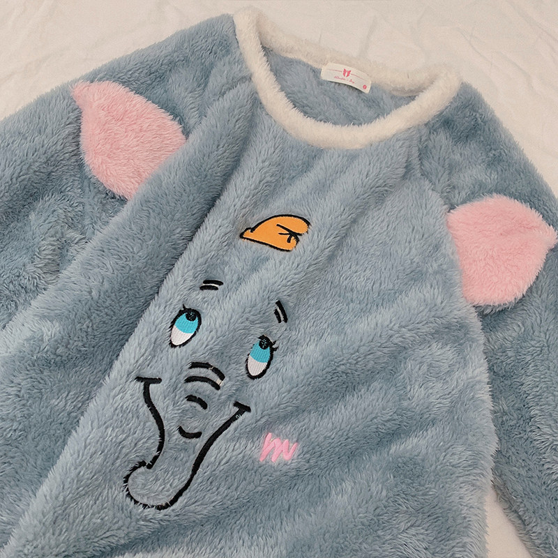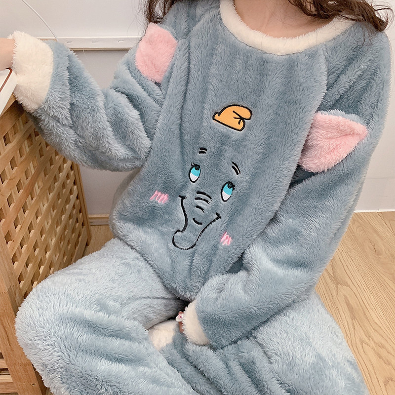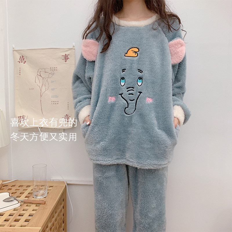 ins Japanese thickening and fleece pajamas women's autumn and winter net red models cute sweet student bedroom warm cartoon