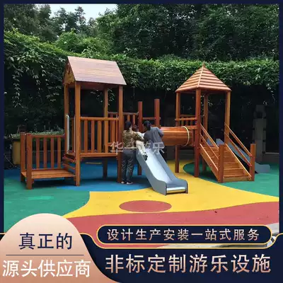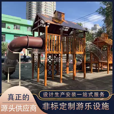 Outdoor wooden combination slide equipment kindergarten community children wooden expansion climbing frame drill online game facilities