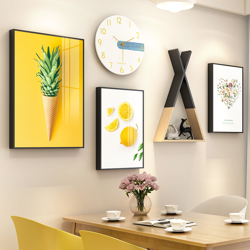 Modern minimalist dining room decorated painting Fruit restaurant wall painted Nordic dining table background wall of warm clock murals