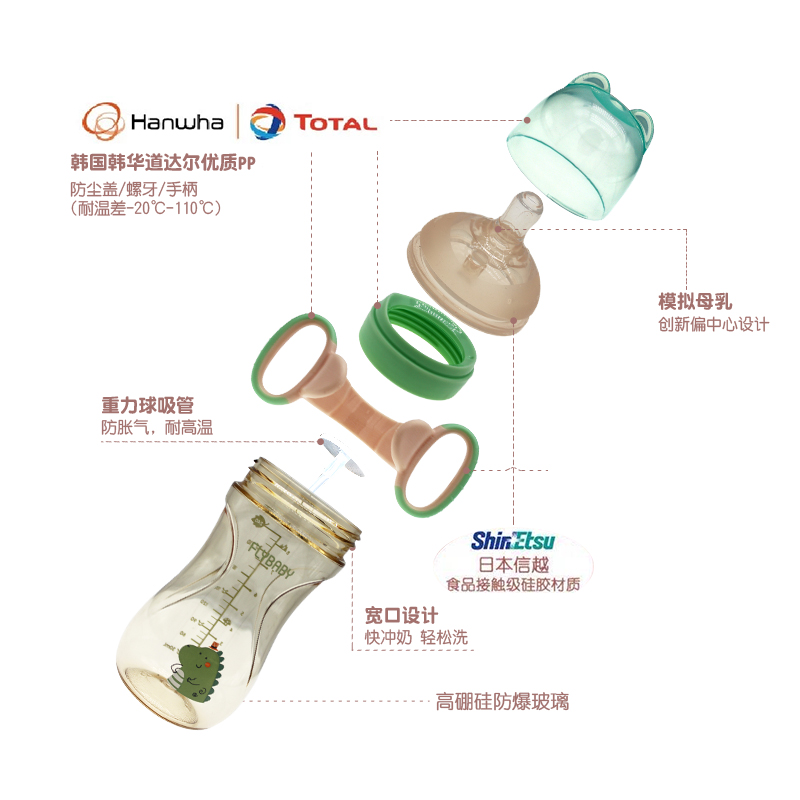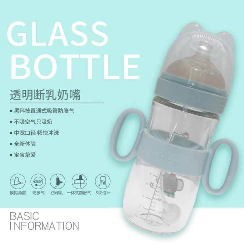Fei Lebi glass bottle newborn baby big baby straw bottle wide-caliber explosion-proof anti-fall glass