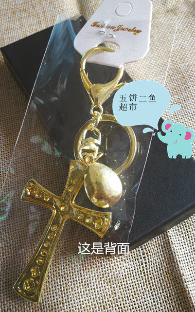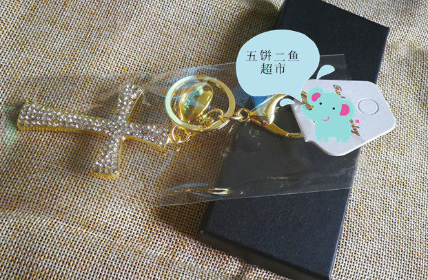 Stainless Steel Drop Cross Key Button Car Pendant Car Key Buttoned Water Drill Metal Keyring Pendant