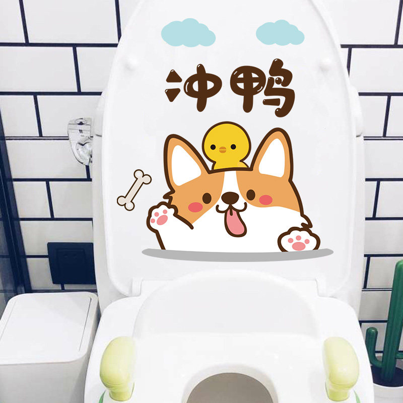 Cartoon cute corgi toilet sticker toilet creative personality funny waterproof toilet lid sticker decoration