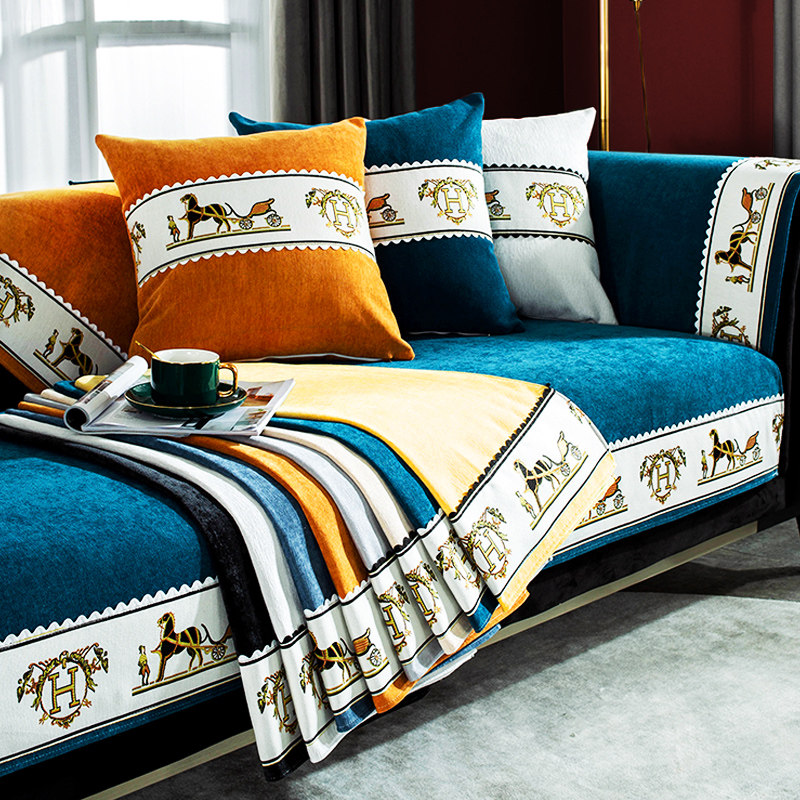 Simple modern sofa mat Nordic style light luxury snownier four seasons general anti-slip high-end leather cover backscarf
