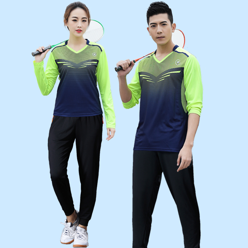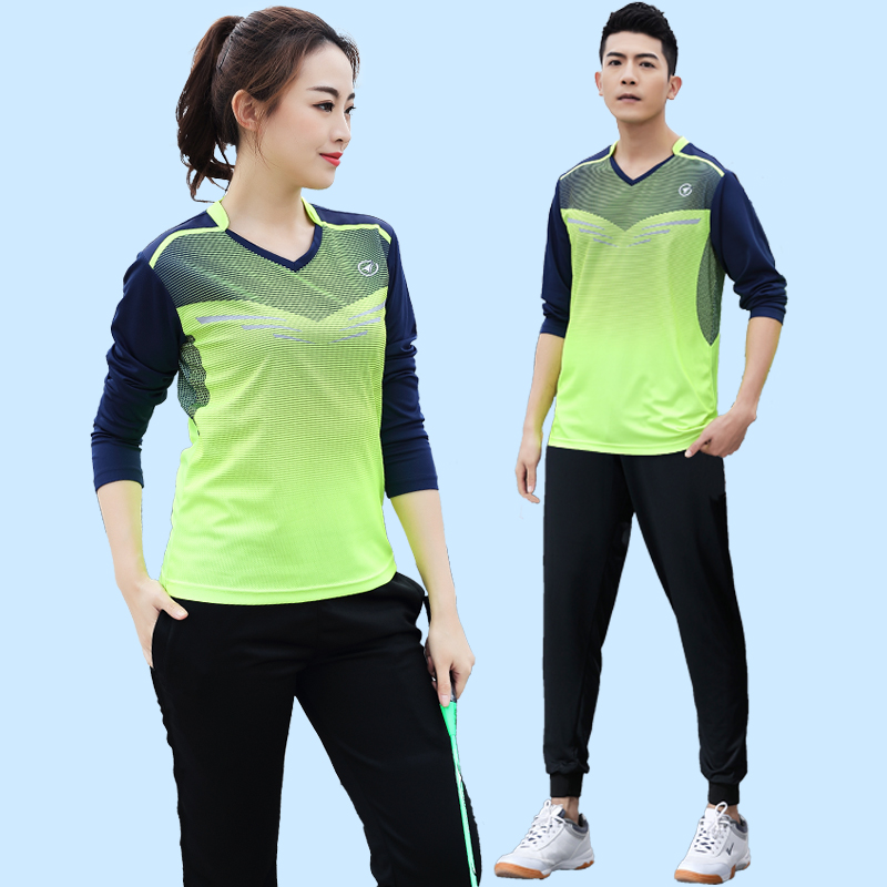 Long-sleeved badminton suit Women's top quick-drying autumn and winter men's sports suit Team competition training table tennis suit Team uniform