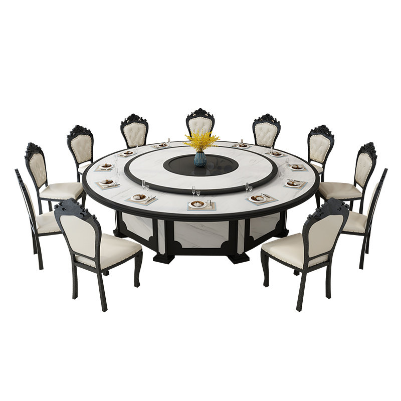 New Chinese Restaurant Bag Room Roundtable With Induction Cookery Electric Dining Table New Chinese Style Big Round Table Hotel Big Round Table