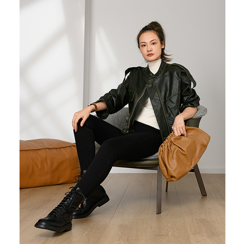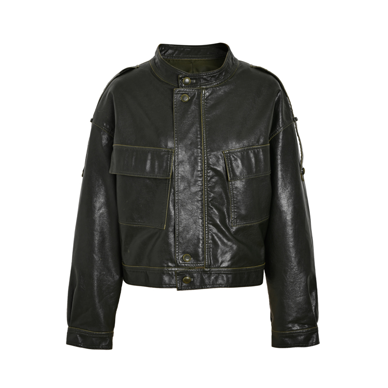 Meiyang MEIYANG (stock) nostalgic vintage oil-rimmed jacket stand-up collar pocket cropped stylish coat spring