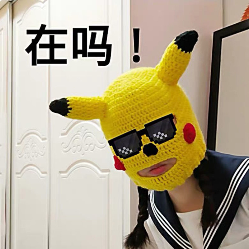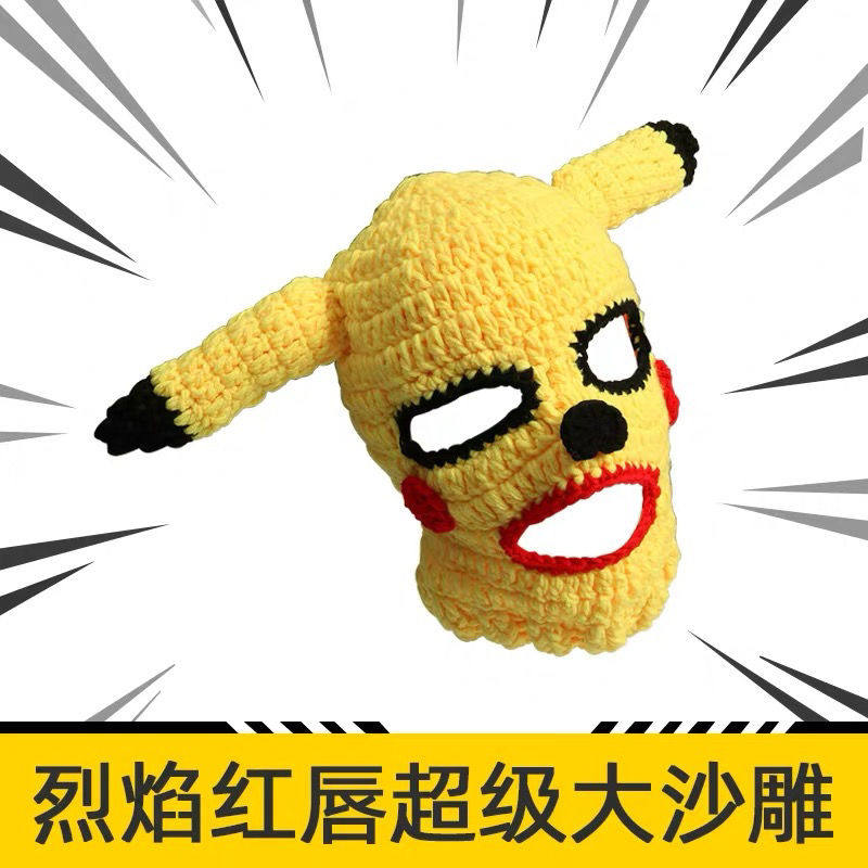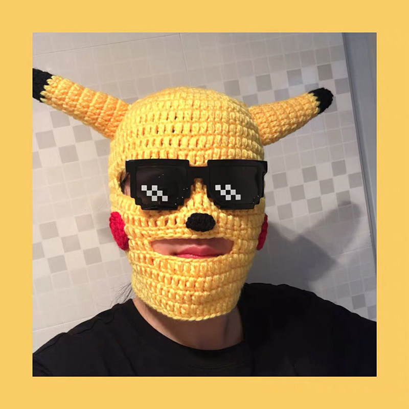 Classic original Pikachu with black eyes Pikachu with flaming red lips Pikachu with mosaic glasses and black eyes Pikachu with mosaic glasses