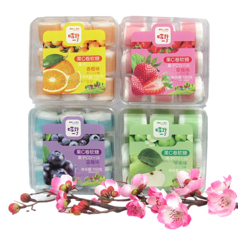 Zunger Fruits C Rolls Juice Soft Sugar 160g * 4 boxes STRAWBERRY TASTE CHILD CANDY Back to 100 million Taste Net Red Snacks