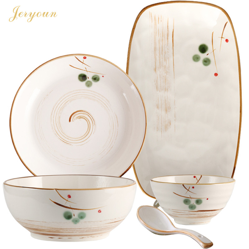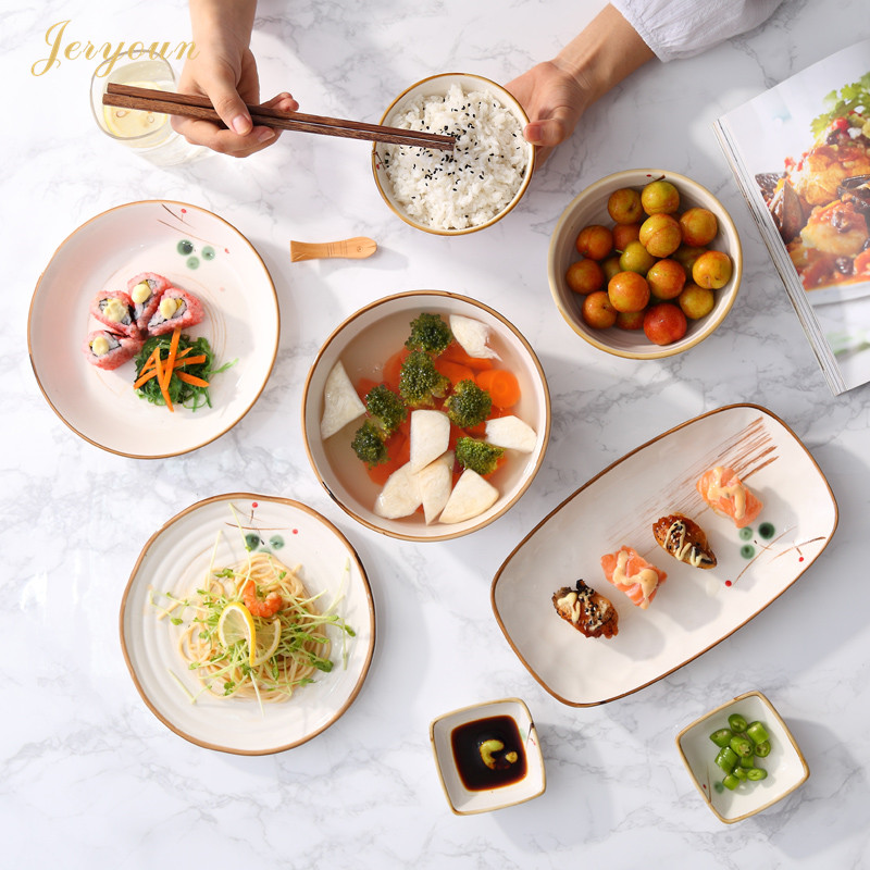 JERYOUN Japanese-style ceramic bowls and dishes tableware set fashion household dining tableware bowls trend plate combination