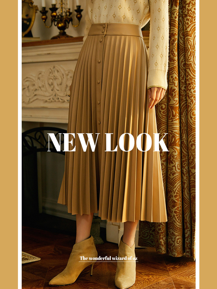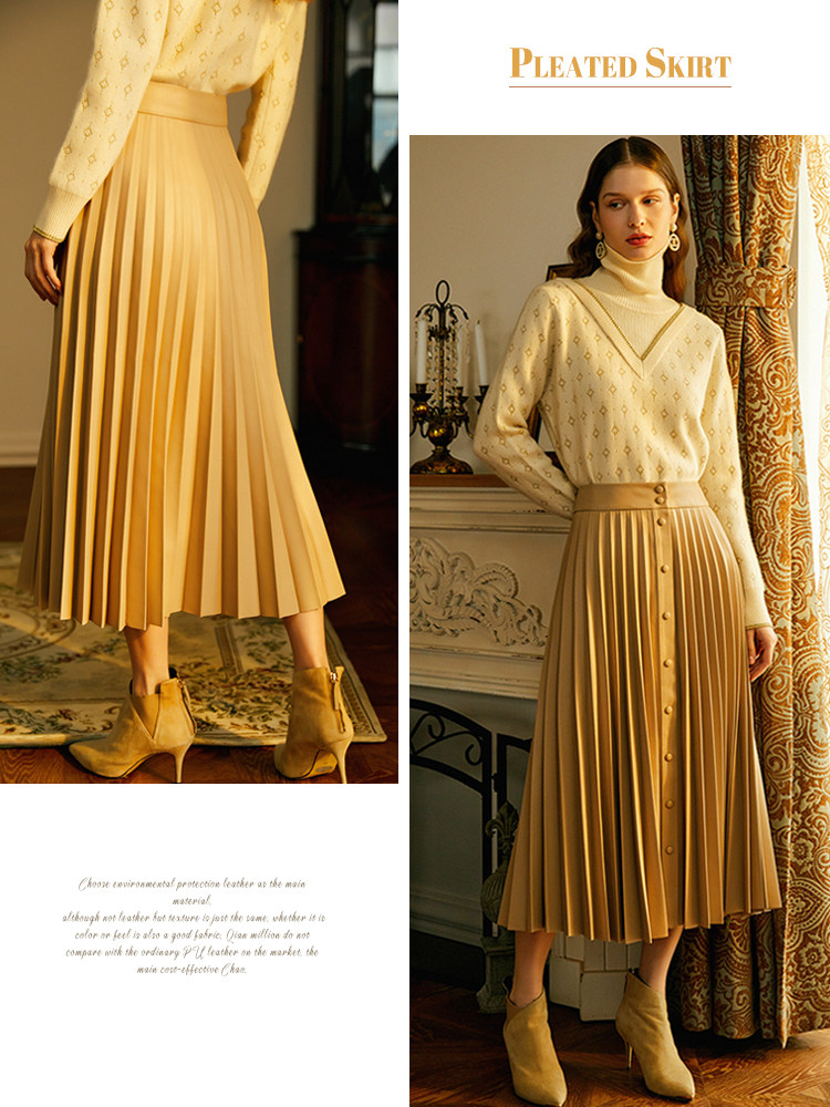 Oz country imported environmentally friendly leather A-line pleated skirt women's autumn and winter 2-color fashionable high waist thin skirt leather skirt
