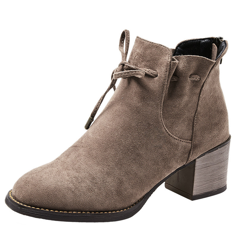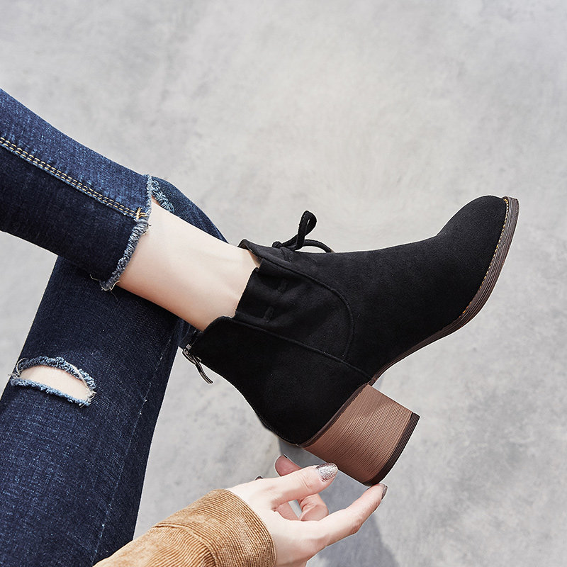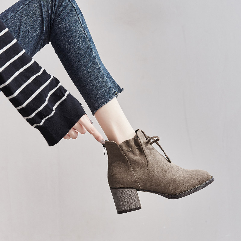 High heel short boot female coarse heel 2020 autumn winter new gush Martin boots female Inron 100 hitch heel retro nude boots
