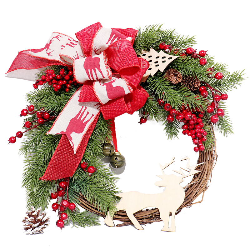 Bell and deer red fruit M pine cone with lamp American deer rattan ring