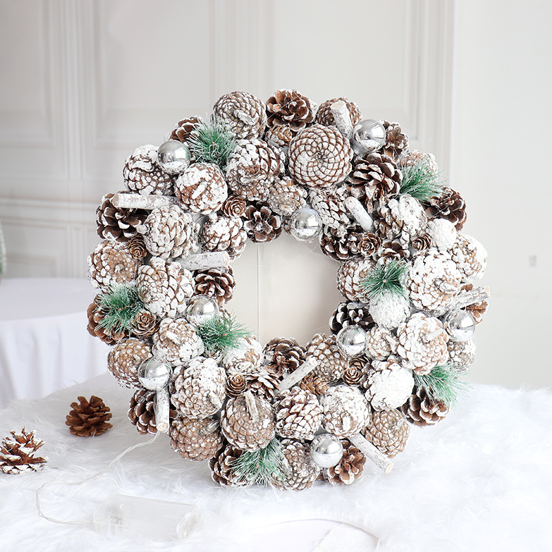Christmas decorations garland creative American ins country style wall pendant Christmas tree accessories pine cone rattan circle