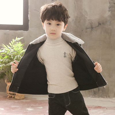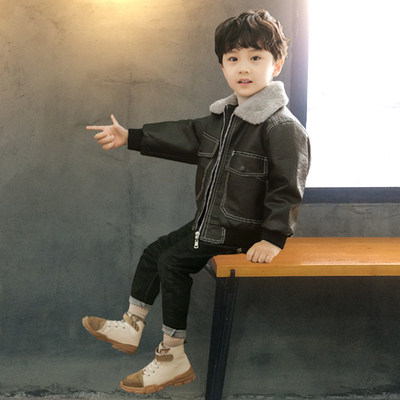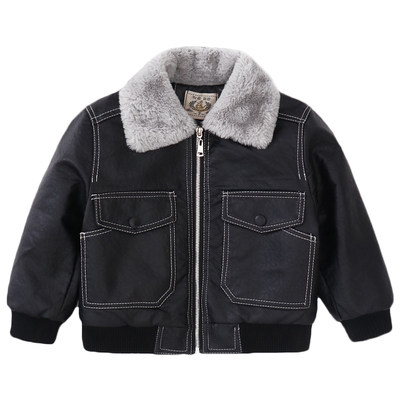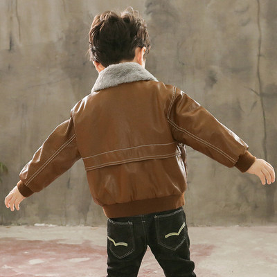 Children's clothing boys' foreign gas leather jacket plus fleece jacket 2022 autumn/winter clothes in the big boy baby warm plus thick leather jacket