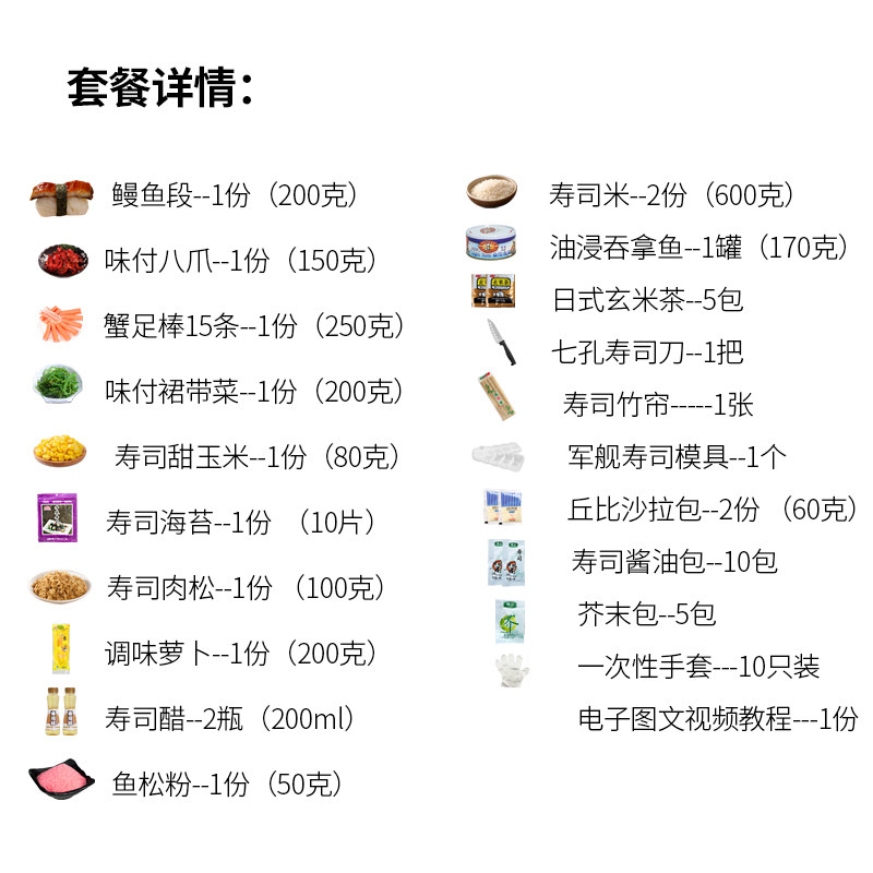 Ingredients for making sushi Ingredient set Full set of instant sushi cooking tools Seaweed seaweed wrapped rice seafood ingredients