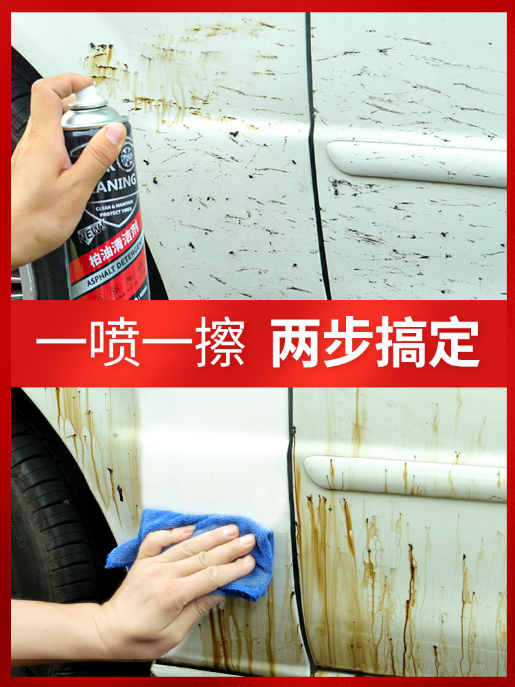 Asphalt cleaner, white car used to remove paint, asphalt cleaning, strong decontamination car wash liquid, oil