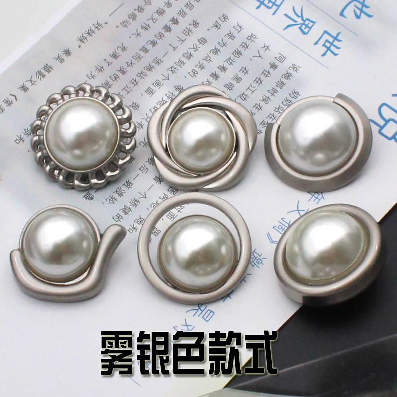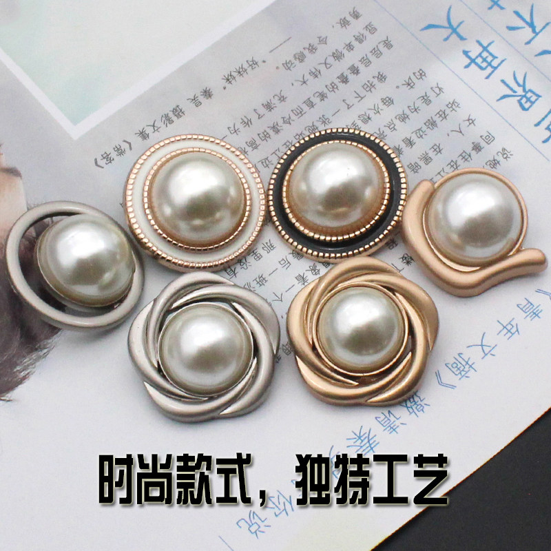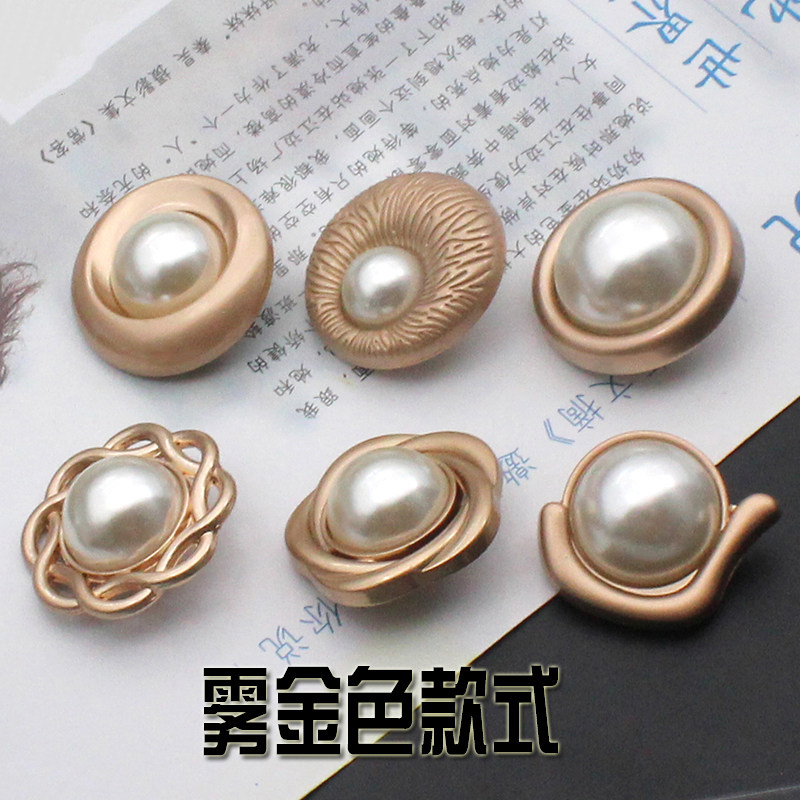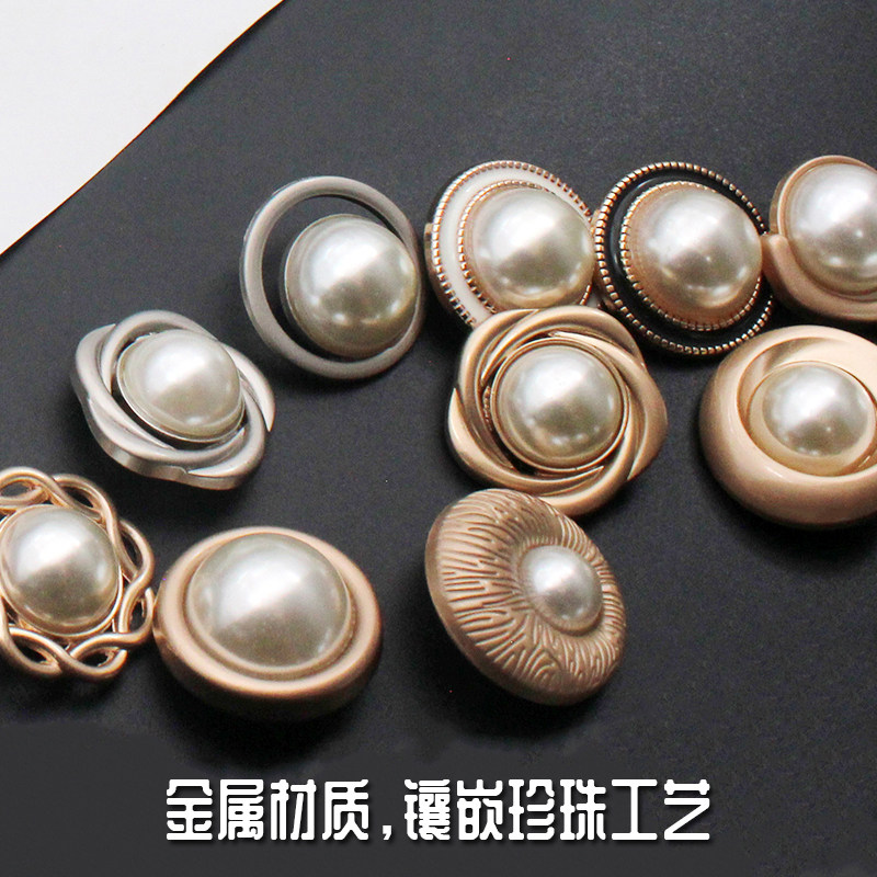 Metal coat button inlaid with pearl button small fragrant Wind Women's dress round diamond trench coat coat wool button