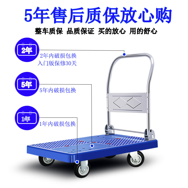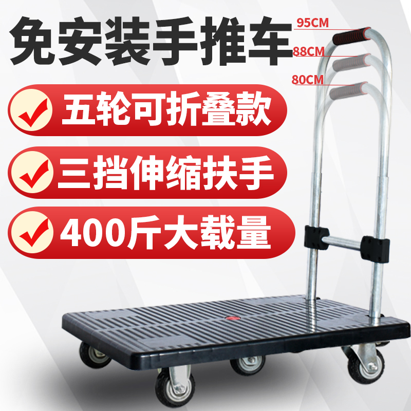 Silent trolley flatbed truck truck push truck plastic small trailer foldable portable trolley pull truck