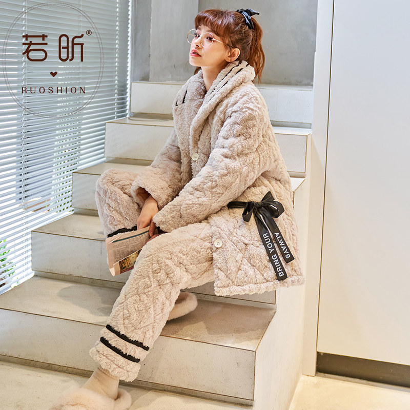 Coral Suede Pajamas Woman Autumn Winter New Thickened Triple Layer Clip Cotton 2020 Sweet And Cute Flannel Sumpsuit
