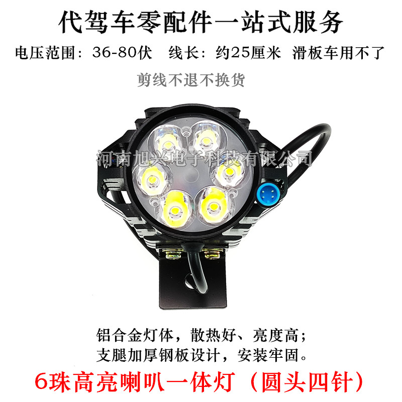 Electric vehicle high light LED lights lithium scooter 48 volt 36V long - term high - power horn one headlamp