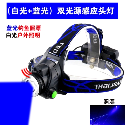 Fishing light Night fishing Blue and white Double light source Induction Headlights Charge Waterproof Zoom Led headlights Lighting